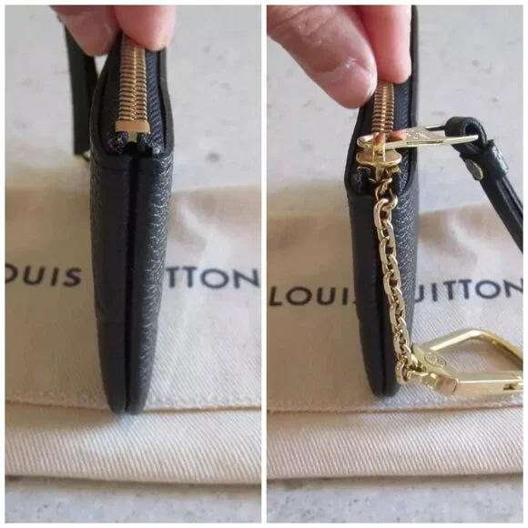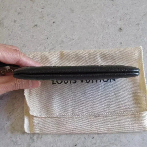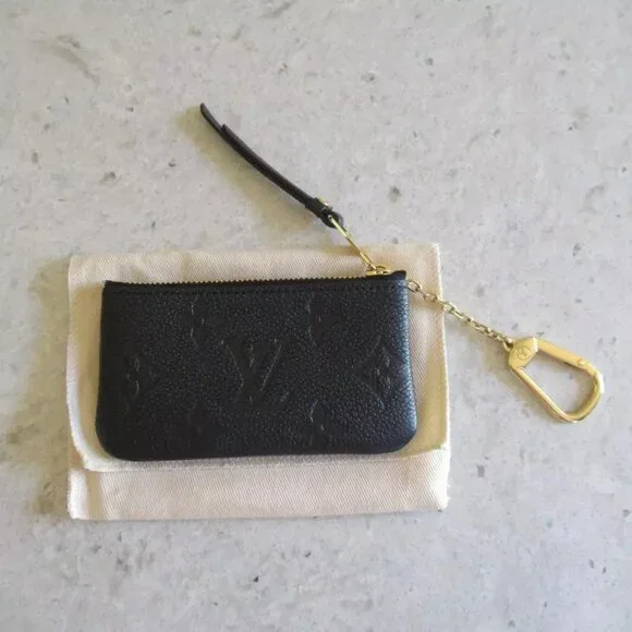 2022 Louis Vuitton Empreinte Black Leather Key Pouch Coin WalletCondition: Excellent used a few times condition. Guaranteed Authentic!Excellent used a few times condition. There are some minor scratches on the gold hardware and key fob. There are minor marks inside the pouch. Best offers are welcome!Please look at the pictures carefully to determine the condition of the holder.This is a used item so don't expect it to be brand new.This bag will be authenticated by POSHMARK authenticity program before shipping to the buyer.Comes with: Box with ribbon, dust bag, receipt holder, receipt, and 2 tagsMaterial: Empreinte LeatherMeasurements: 4.7"L x 2.8"H x 0.6"DMade in: FranceDescription:This Key Pouch is made from Monogram Empreinte Leather on one side with lighter Monogram Eclipse Reverse on the other. It’s ideal for carrying coins, cards, banknotes and other small items, as well as keys. Secured with an LV-engraved zip pull, it features a chain and hook to clip it to a bag or belt.4.7 x 2.8 x 0.6 inches(length x Height x Width)Monogram Empreinte embossed supple grained cowhide leatherGrained cowhide-leather liningZip closureKey ringChain with hook