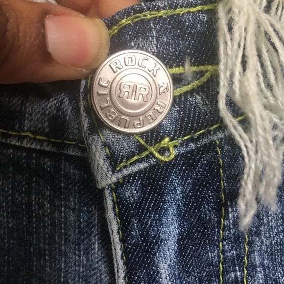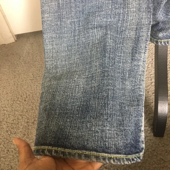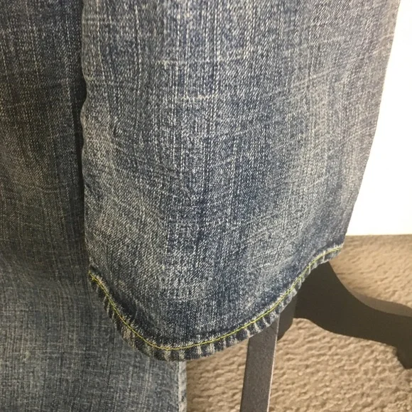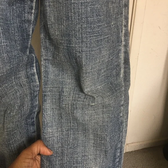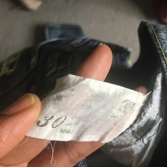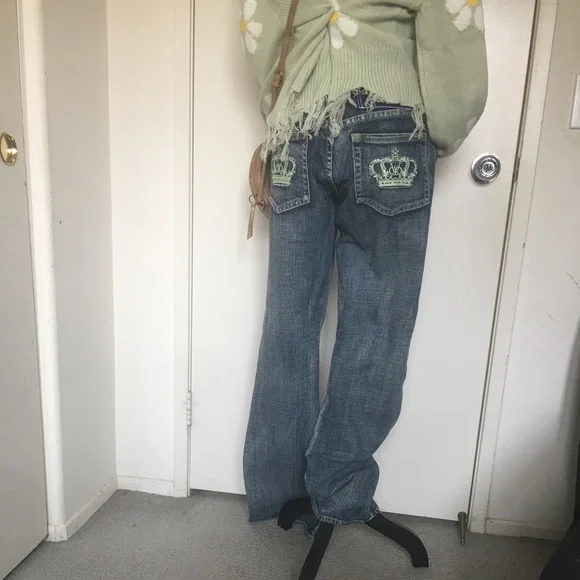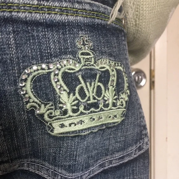 I love these jeans! They look great with everything! I put the mint/green sweater with the jeans to bring out the green/mint threading in the jeans! You can also wear these beauties with a body suit and blazer or wear a button up long sleeve top with a vest! And put those drastic pointy heeled boots or pumps and you have a sexy outfit! The jeans are a size 30 they are boot cut! The buttons and zippers are functional! No holes or tears and all rhinestones in the back pockets are intact please refer to the photos! Thank you!