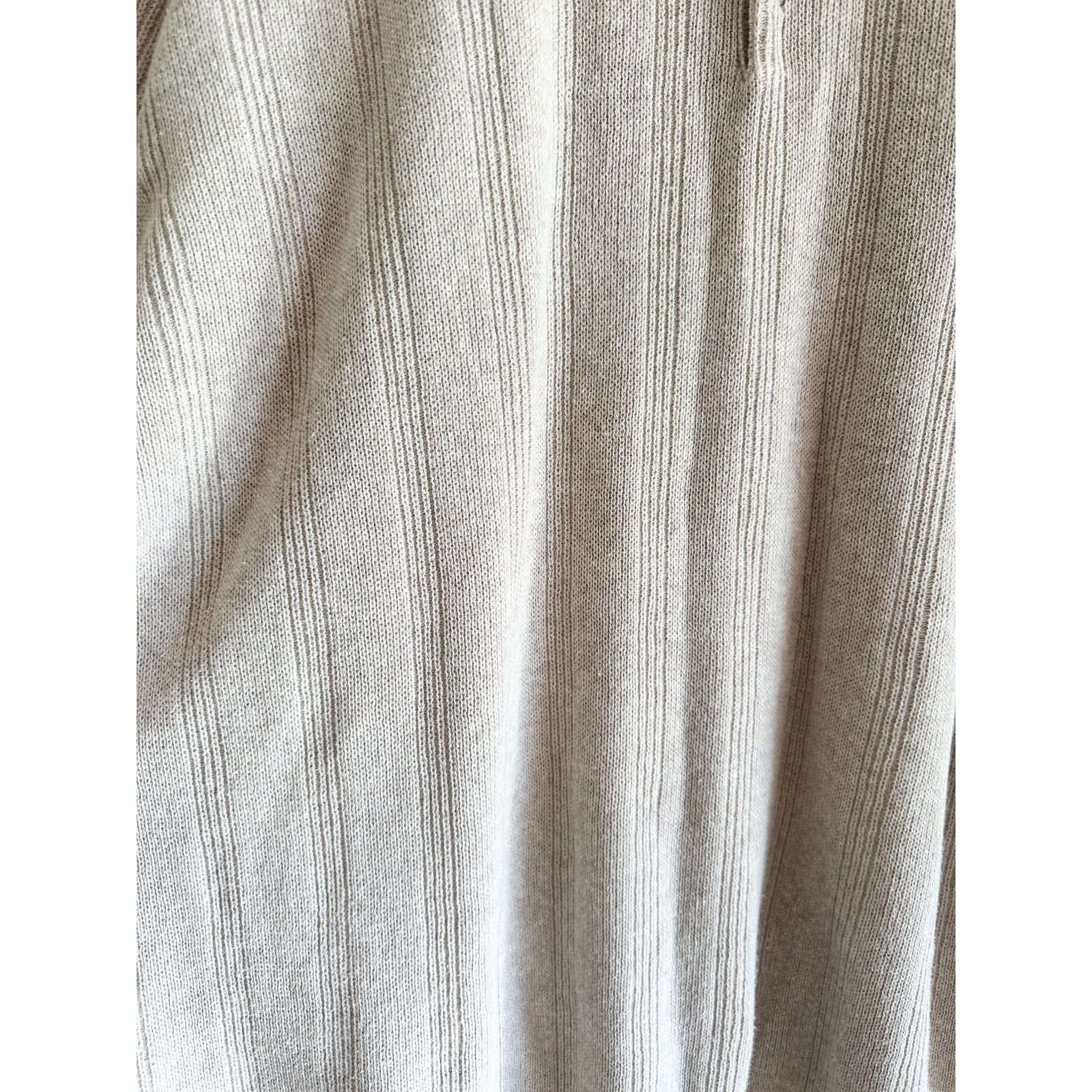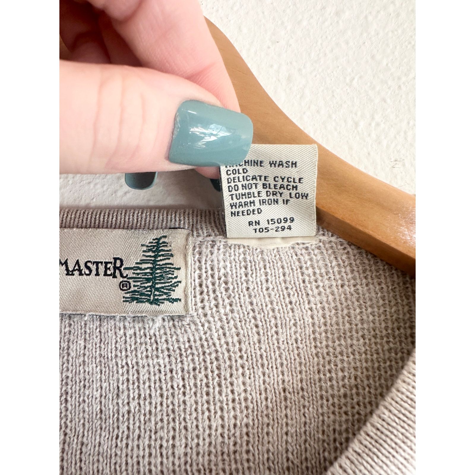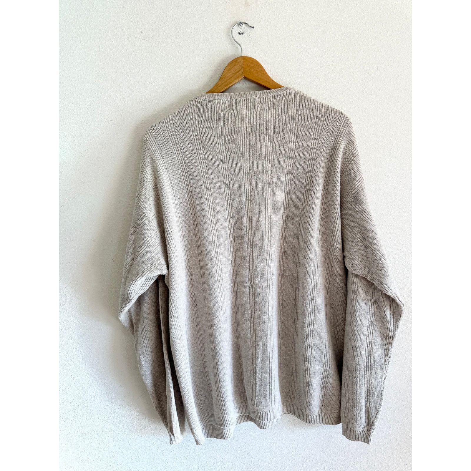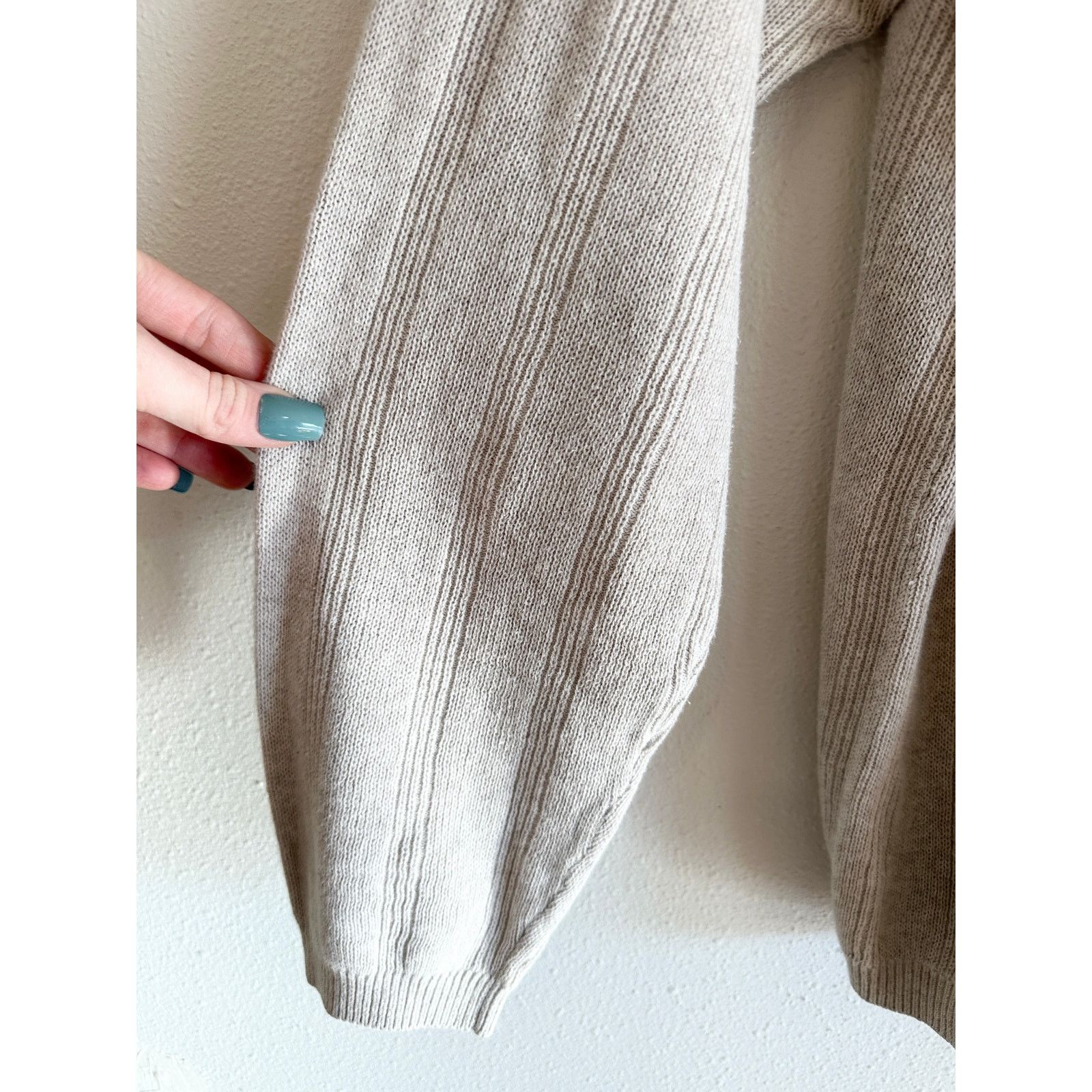 Great quality, cozy sweater with a fun button neckline and striped knit pattern. This is 100% cotton but a lighter weight knit and super comfy.