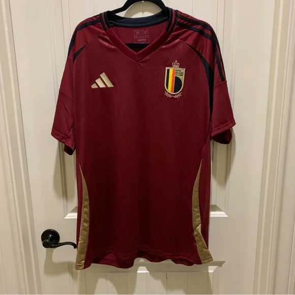 adidas Belgium 2024 Men's Home Jersey 2XL slim fit red gold black