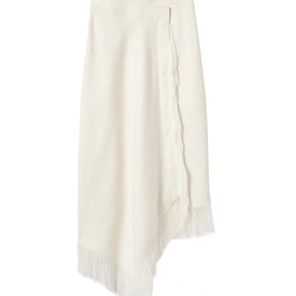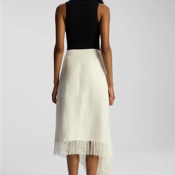 A.L.C. Amelia cream linen blend wrap fringe skirt sz 2 This season’s hottest trend! This elegant cream skirt features a stylish fringe detail, perfect for any occasion. Its versatile design makes it a must-have addition to your wardrobe. Easy to dress up or go casual, both with ease and comfort. Waist: 30"Hip: 35"Length: 30"Fabric: 56% Linen, 18% Viscose, 12% Cotton, 8% Acrylic, 3% Polyamide, 3% Polyester$395 original retail This elegant cream skirt features a stylish fringe detail, perfect for any occasion. Its versatile design makes it a must-have addition to your wardrobe.