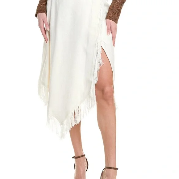 A.L.C. Amelia cream linen blend wrap fringe skirt sz 2