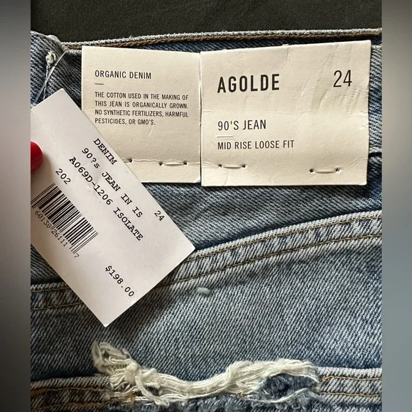 Brand New Agolde 90s Mid Rise Loose JeansSize: 24Product Details:100% organic cottonMade in TurkeyMachine washButton fly5-pocket stylingIntentionally faded and washed detailDestroyed detail throughout18" at the knee narrows to 15" at the leg openingRevolve Style No. AGOL-WJ338Manufacturer Style No. A069C-1206