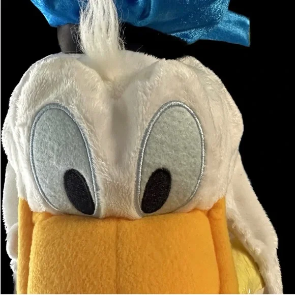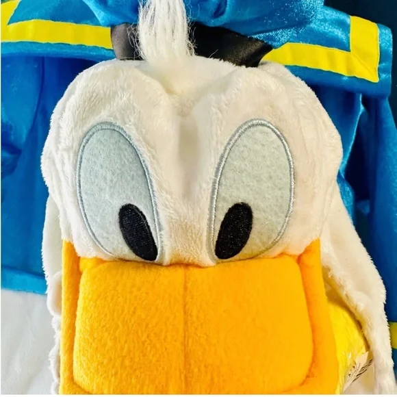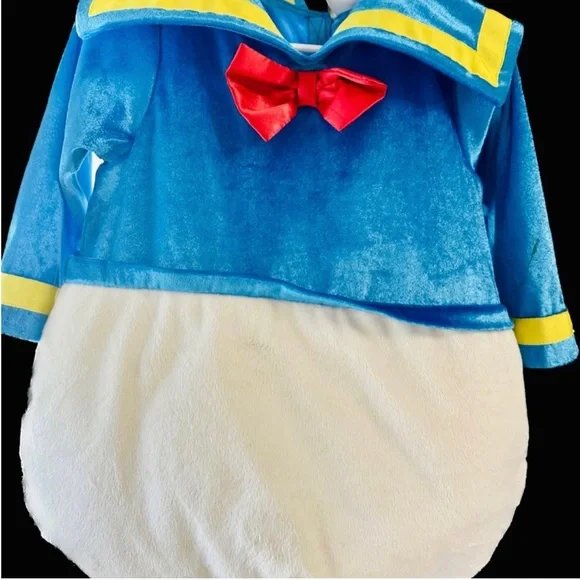 Donald Duck Original Limited Edition Disney Park Costume. It’s ultra-soft, plush with lots of Padding. Only worn once closet kept in excellent condition. Smoke free home… Includes one pair of Brand New yellow tights. Size 18-24months. Gender Neutral toddler costume. So adorable!! The head piece has a beak that squeaks. Velcro fasteners for head piece and on bottom of outfit for easy diaper changes or potty breaks. Bought in and was only available for limited time at Walt Disney Theme Parks. Great quality, made to last!! Could be sold again or passed down many times! Perfect for Disney trip or as Halloween costume. Original price $95