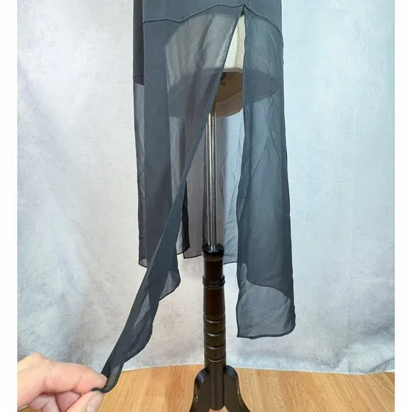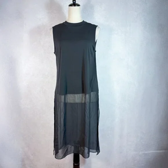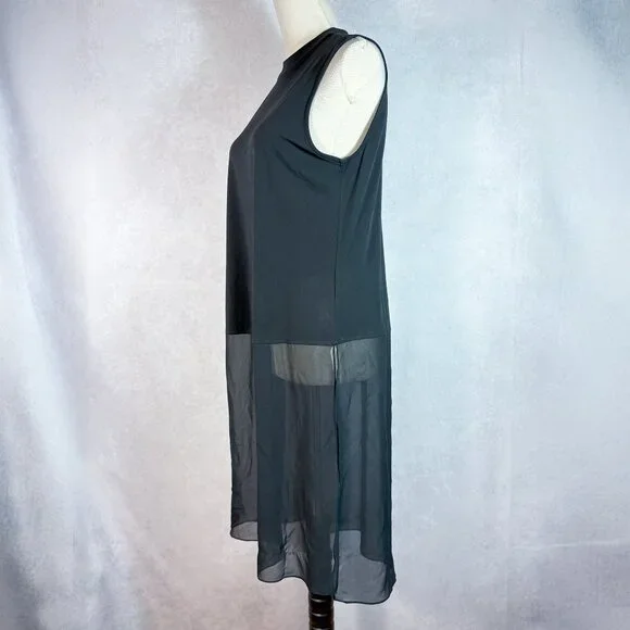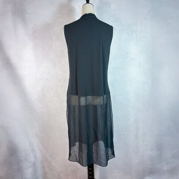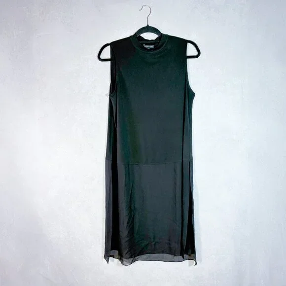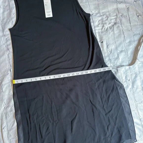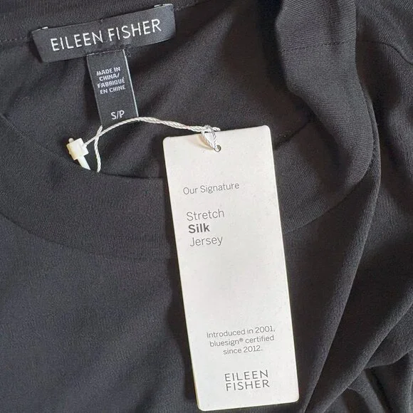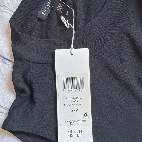 Eileen Fisher 100% Silk Sleeveless Mock-Neck Stretch Jersey Tunic Black Size SPBrand new with tag.A long, sheer top that layers beautifully over a tank or cami. Featuring a bateau neck and dramatic side slits.Close at the shoulders, wider at the hem. A silhouette that fits the body with ease.Fine silk that's spun with a high twist for strength and resilience. Ethereal and practical.Machine wash cold. May be dry cleaned.100% Silk.Smoke free home.