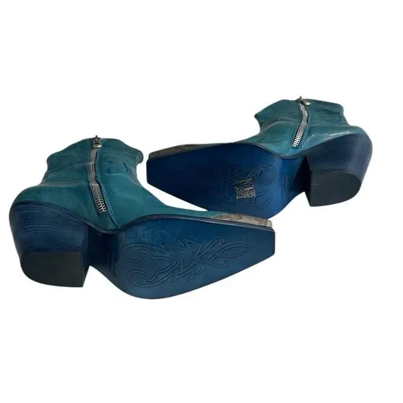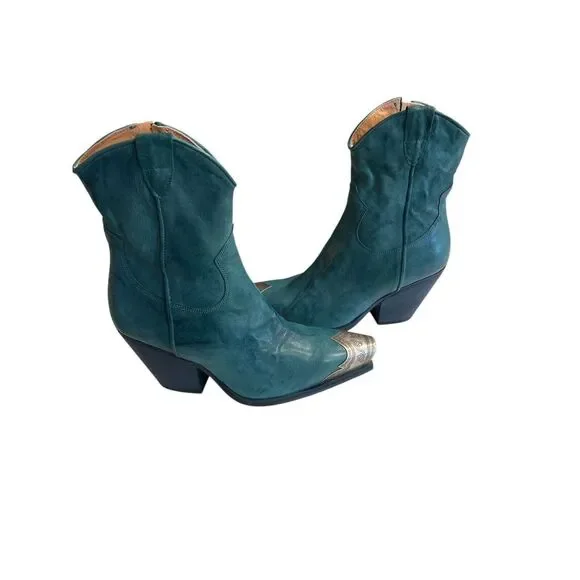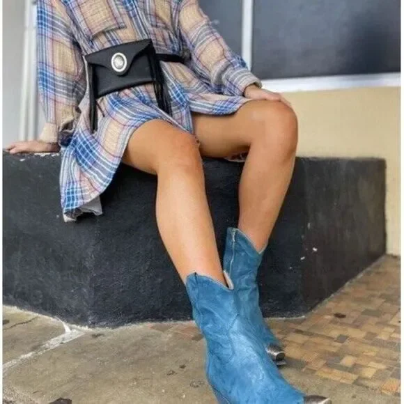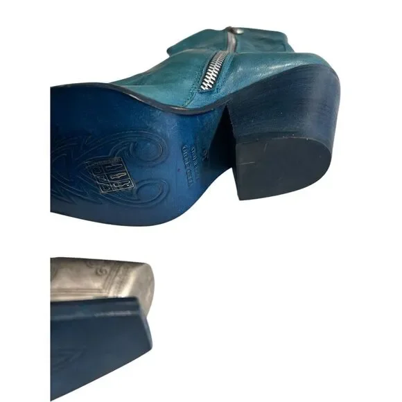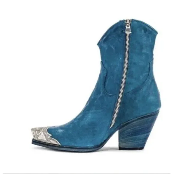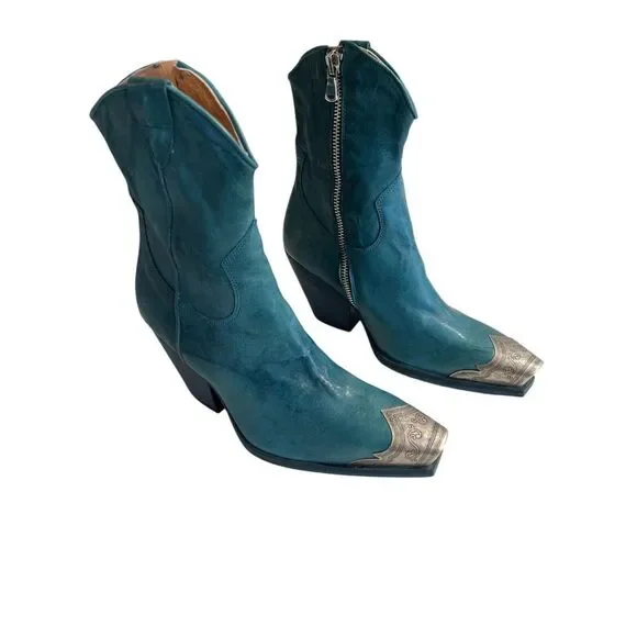 Free People Brayden Western BootThese boots were most definitely made for walking! The Brayden western boot from Free People features a classic cowboy-inspired silhouette in an eye-catching purple hue. Complete with a silver cap toe detail with intricate carvings.Item # 572758UPC # 195889277039FEATURESLeather upperInside zipper closurePointed snipped cap toeSynthetic liningApprox. 5.6" shaft heightApprox. 10.75" calf circumference2.9" stacked heelSynthetic soleImportedBrand new without boxPlease see pics for condition36/6