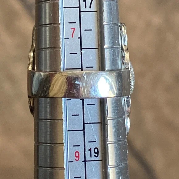 This listing is for an IMPRESSIVE artisan-crafted lapis ring! The size and color of the gemstone is striking! The 925 sterling filigree setting is feminine and truly distinctive! Due to the design, the ring is a snug-fitting size 8.I am a very classic size eight, and I’ve gained a few pounds. I have owned this ring for several years, but it is a bit tight for me in the summertime now, so I am letting her go. This beauty has been a favorite; don’t let her get away. She is truly a beautiful ring!(JEW: C)