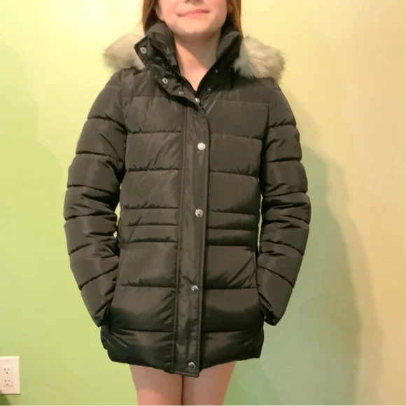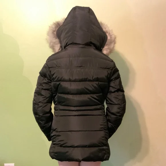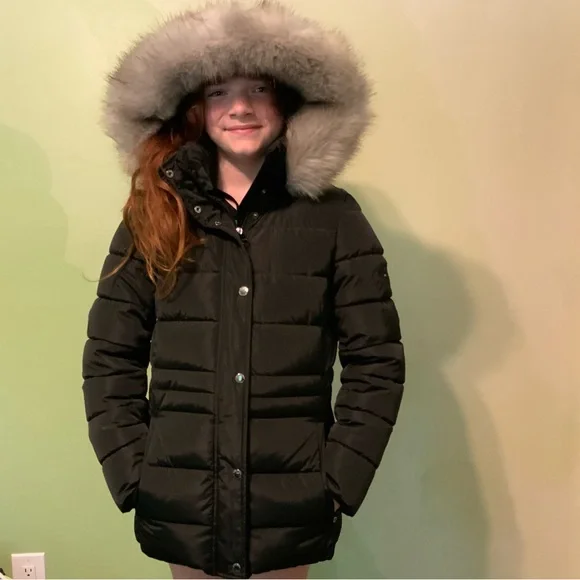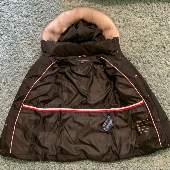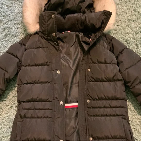 Tommy Hilfiger Hooded Puffer Winter CoatNWOT Never worn. Bought for my daughter, she said it fit, and then decided it didn’t after I removed the tags. Fur lined hood. Removable hood. Drawstring pulls hood tight. Zip up pockets. Inner cuffs help keep snow and cold out.Zipper and button closure.Size XXS will fit size 8/10 girlExtra thick puff to stay extra warm.