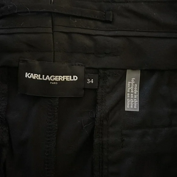Elevate your wardrobe with these Karl Lagerfeld trousers. They feature a size 34 waist, 12-inch rise, and 31-inch inseam, offering a polished fit perfect for office wear or upscale occasions. A staple for any fashion-forward man. Known for impeccable tailoring and timeless European style, Karl Lagerfeld pieces exude sophistication and class.