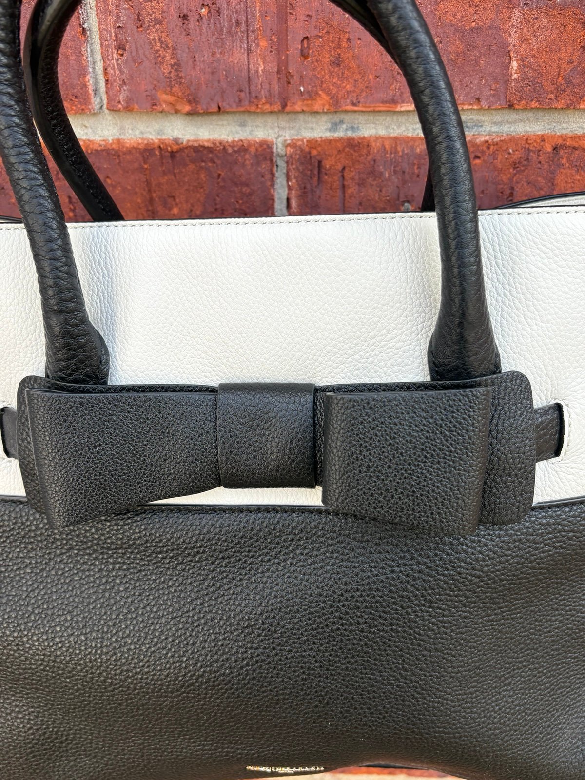 Karl Lagerfeld Paris, Pebble Leather Satchel, Tote Bag, in Black/White with Bow
