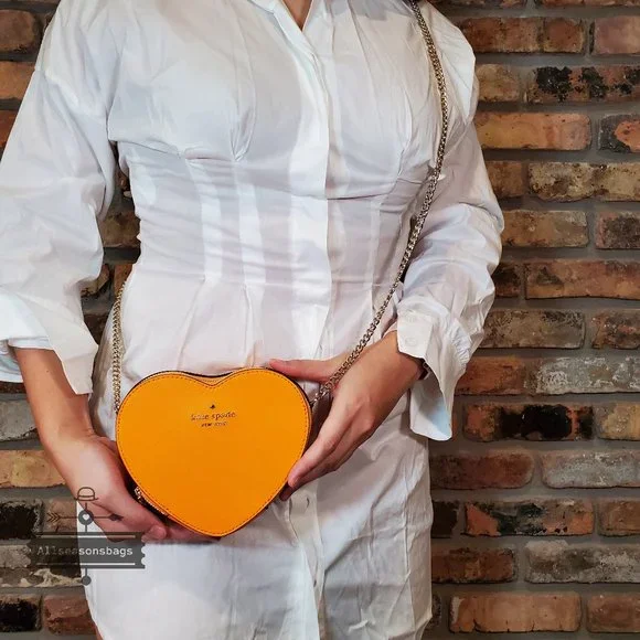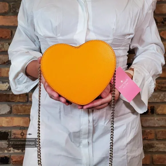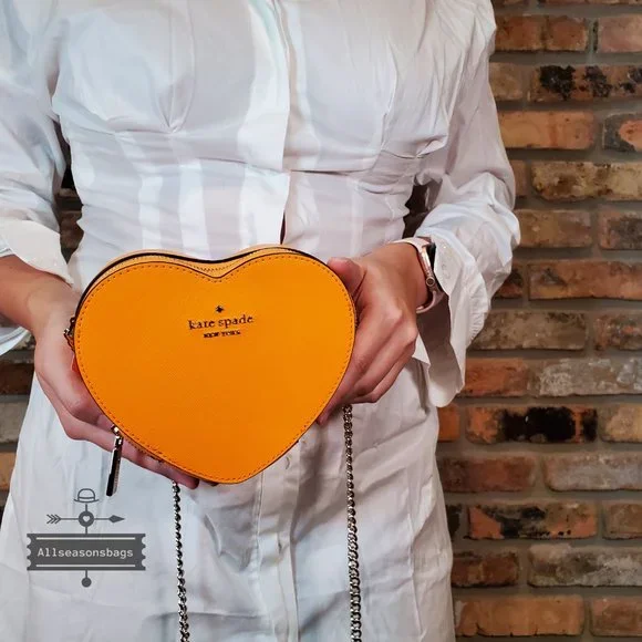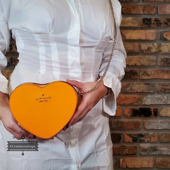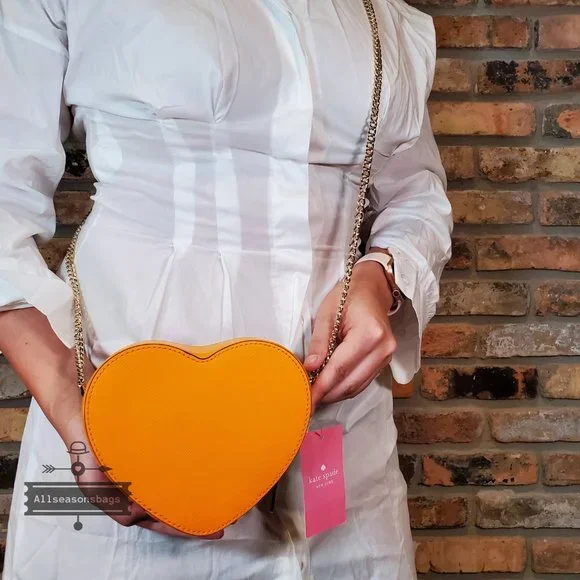 ** Authentic Kate Spade New York Love Shack Mini Heart Crossbody Bag Pride ORANGE Leather*** CLOSET CLEAR OUT!!! LAST PRICE - no more reductions, FIRM PRICE ***Model wears size XS so items may appear larger in photos. PLEASE check all MEASUREMENTS before making a purchase to ensure this is the exact size that you’re looking for. ** New with tag bag, purse, trendy5.1" h x 5.9" w x 2"dstrap drop: 23"saffiano leatherksny metal pinmount logotwo way spade jacquard liningzip closureno dust bagPlease be aware that every bag is unique and the pattern you receive may differ from the pattern in the photos!