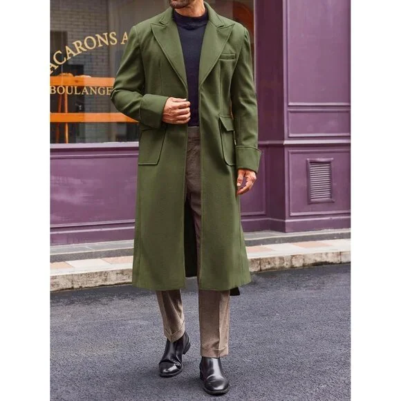 Fabric: Mens long trench coat is made of high quality fabric, which is soft, comfortable and stretchable to wear, keeping you warm in cold days.Features: This classic windbreaker for men features long sleeve, full-length design, 2 side pockets, 1 chest pocket, solid color, slim fit, turn down lapel collar, belted in waist, single rear vent and full lining, providing you a pleasing wearing experience.Match: Modern design overcoat can be easy matched with suit jackets, shirts, trousers, leather shoes and a briefcase to show business work style, also can be paired with sweaters, sports, jeans and a wool scarf for an elevated dressed-down look.