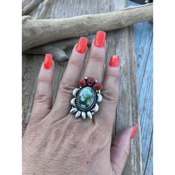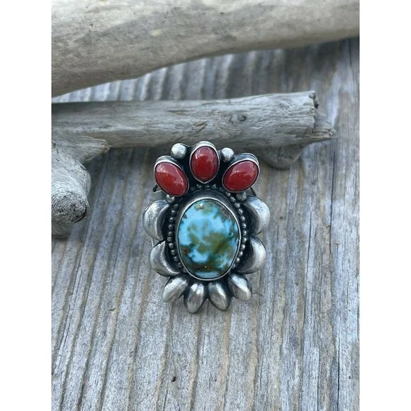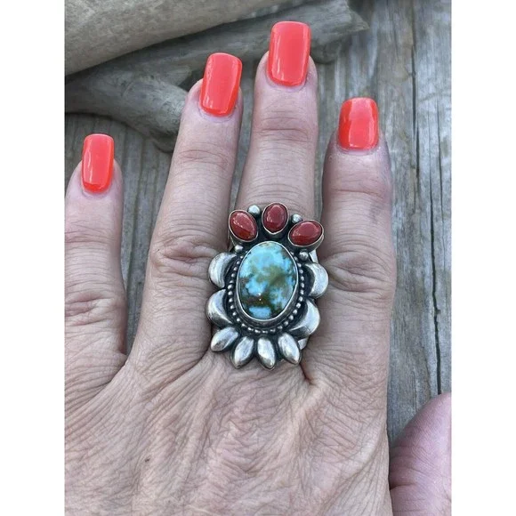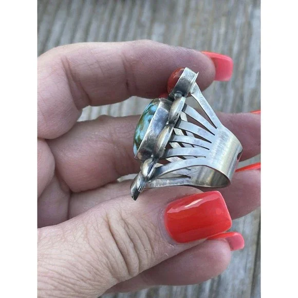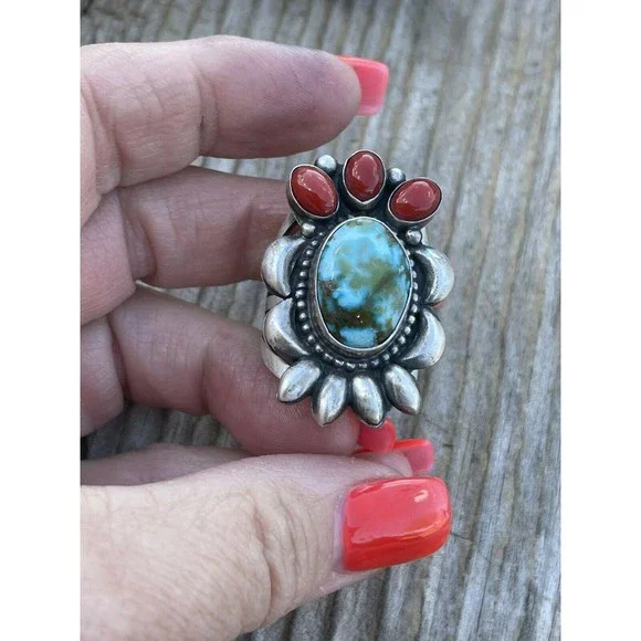 New without tags* JEWELRY TYPE : Rings* MAIN STONE : Turquoise* METAL : Sterling Silver* RING SIZE : 8.5* ARTISAN : Danny ClarkNavajo Sterling Silver Multi Stone Southwest Ring. Sz 8.5. Gorgeous Kingman Web Turquoise Natural Red Coral Stones. Measuring 1 1/2 inches long and 1 inch wide. Weight 14 grams. Signed by Danny Clark and stamped Sterling. Such a beautiful color combination. Thank you for looking at our items. Please contact us if you have any questions. Exported By ExportYourStore