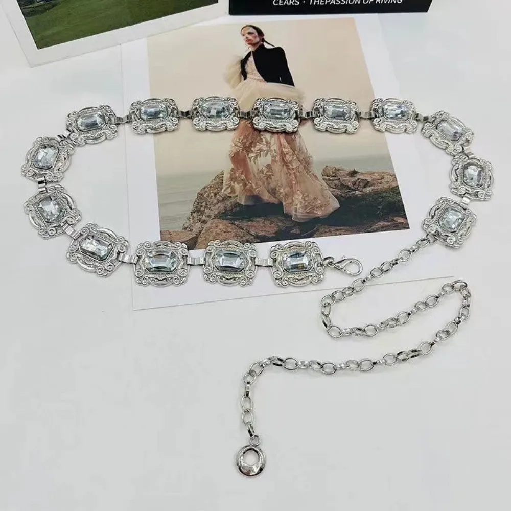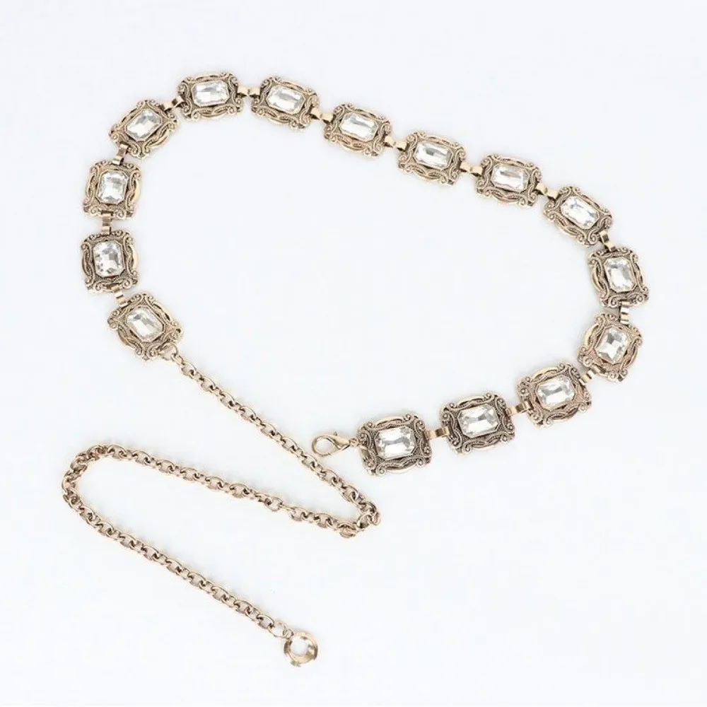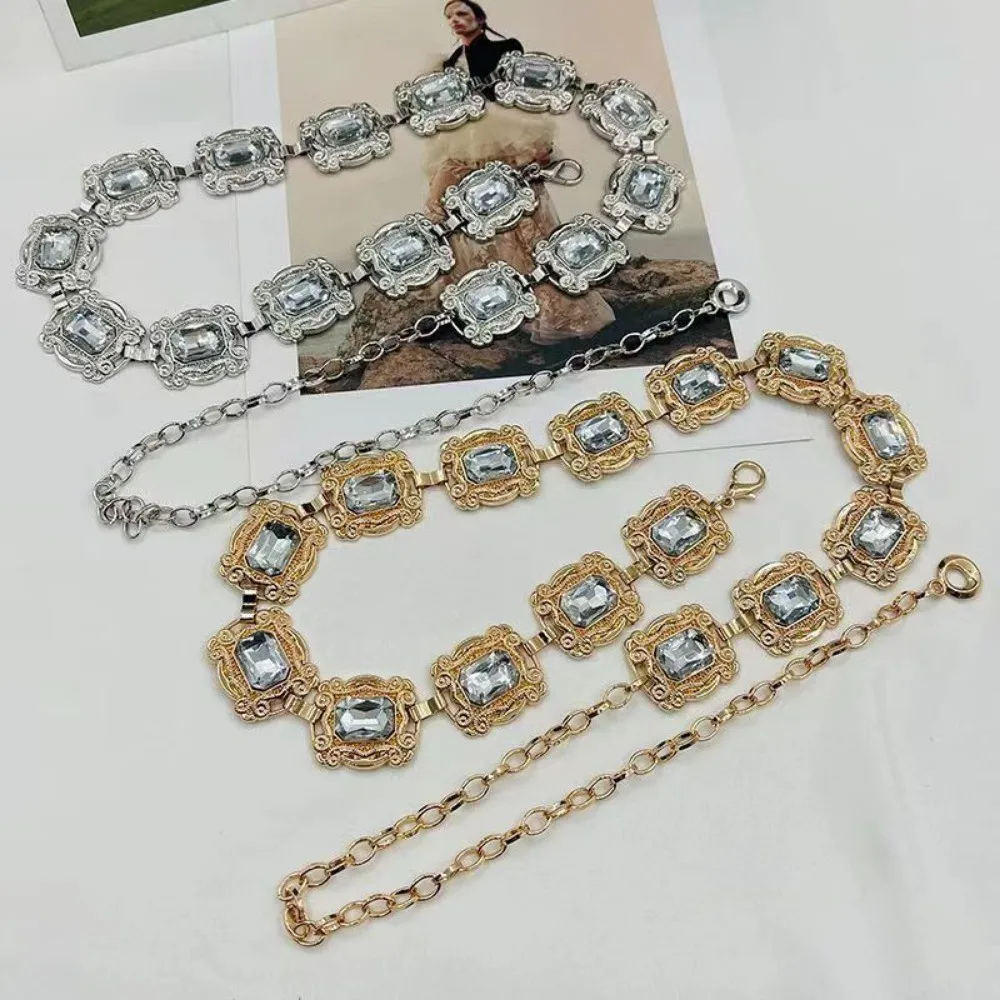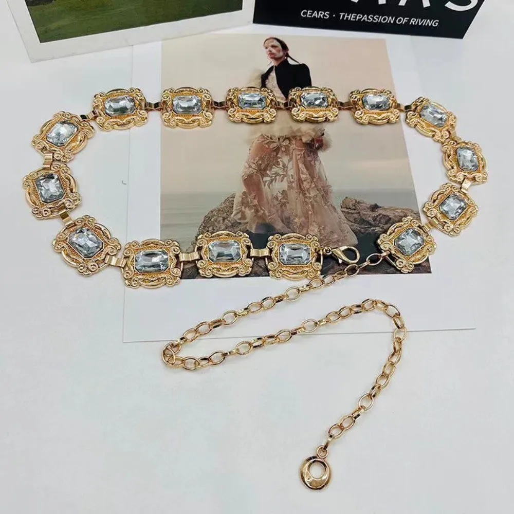 New fashion ladies belt, casual retro ladies belt, versatile acrylic crystal metal chain ladies belt , LR1573