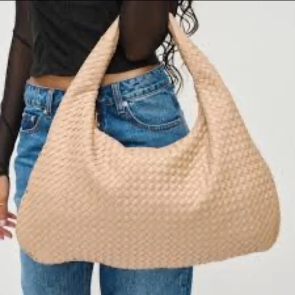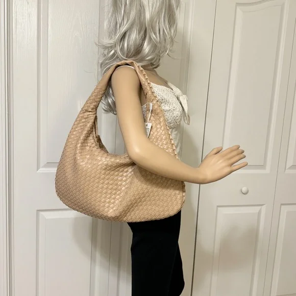 NEW Urban Expressions Laverne Hobo Weave HandbagCondition: New with tags NWTColor: Soft BeigeEmbrace the bohemian spirit with the Laverne Hobo. The braided side detail adds a touch of boho flair to the gold hardware and slouchy shape. Inside, the fabric-lined interior houses a zip pocket and slip pocket for easy organization.Details* Item Type: Hobo* Material: Vegan Leather* Closure: Zipper* Exterior Details: Woven Vegan Leather, Braided Side Detail, Gold Hardware, Gorgeous Slouchy Shape* Interior Details: Fabric Lined, 1 Zip Pocket, 1 Slip Pocket* Dimensions: 19.29” L x 1.57” W x 10.63” H