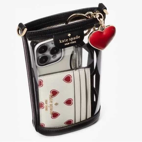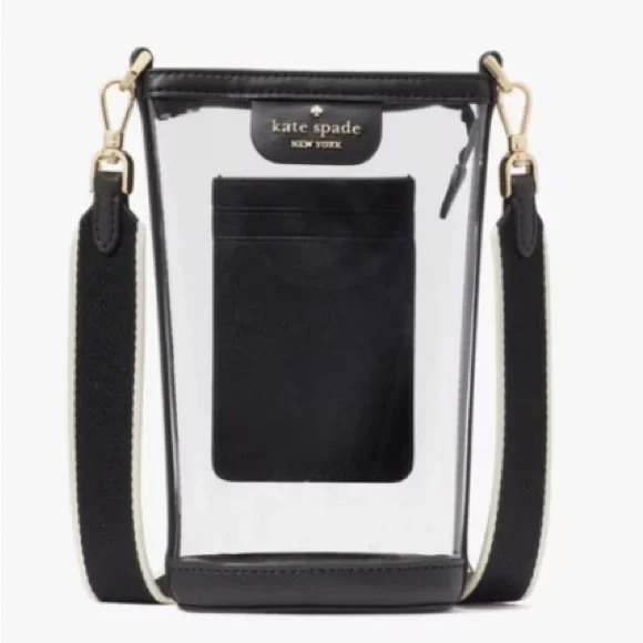 Nwot kate spade Clare clear crossbody phone bag. Adjustable and removable strap.Black.Gold hardware.Excellent condition smoke free home. Never used. Stylish clear crossbody bag. Black trim and strap. Gold hardware accents. Perfect for any occasion. See thru pvc travel bagtop zip closure 3 credit card slots interior and exterior25” drop strap B82
