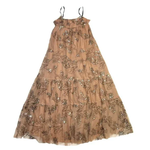 Up for purchase today is...Designer: by AnthropologieSize: M petiteFit: Please do not go by size number but rather check measurements listed below to determine if the item will fit.Color: Neutral MotifStyle/Design #: 4130318350027Material: 100% polyester / Lining 100% modalDetails:* Looking as though it's just stepped out of the pages of a fairy tale, this maxi dress is dreamily stitched together from frothy tulle suspended from thin straps that frame the scoop neckline. Adding to the effect, sequin detailing creates the intricate floral displays that bloom over the style. Non-adjustable grosgrain straps. Elastic empire waist. Elastic neckline. Lined. Dry clean. Imported. *Condition: New with tagsRetail: $248 Measurements:Chest - 36"Waist - 31"Length - 49"