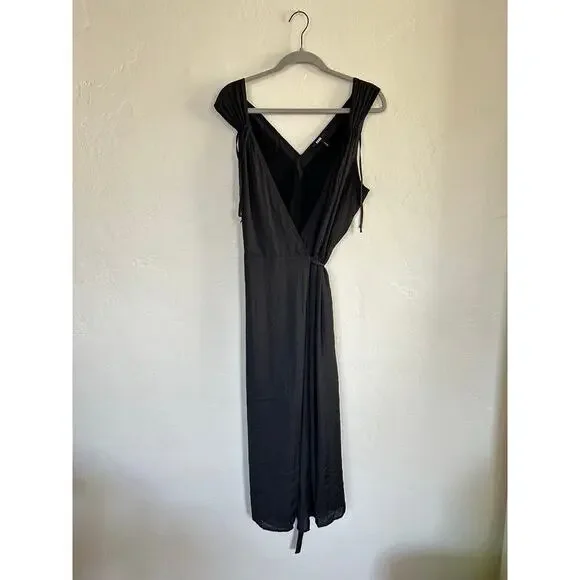 Paige Black Dress Meet the Cerisa Dress - made from matte satin, relaxed enough for weekend plans, or easily dressed-up for a special event. The classic wrap silhouette, subtle dot print, midi length and playful print make this dress a wardrobe mustLaid flat measurements- Pit to pit : 17 inches Top to bottom : 47 inches Size medium New with tags