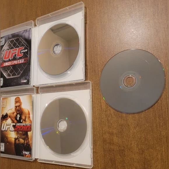 For sale is a trio of Playstation 3 UFC game. The games you ger within the lot are:UFC Undisputed 2009 (Complete,Case,Manual)UFC Undisputed 2010 (Complete,Case,Manual)UFC Undisputed3 (Disc Only)All game discs are in excellent playable condition. UFC 2010 game box has a flaw shown in the final picture. Other then that everything is in great shape. Thank you for your interest.