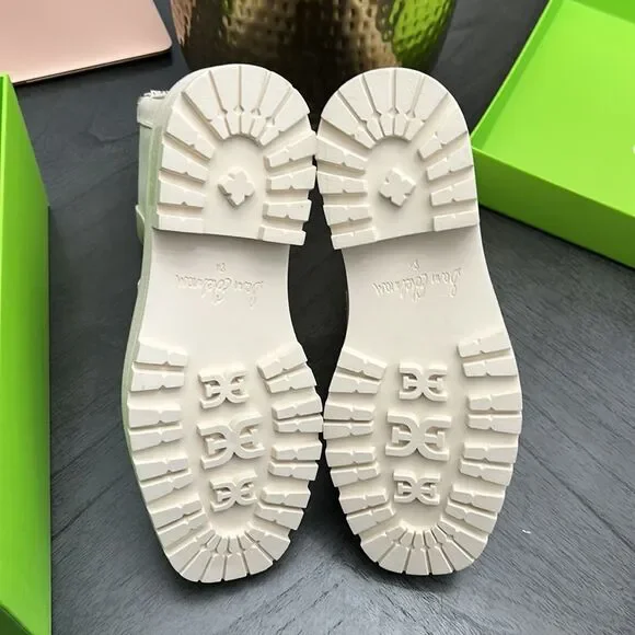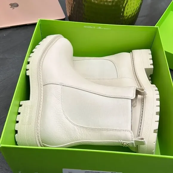 SAM EDELMAN LAGUNA CHELSEA BOOT (WIDE)COLOR:Modern Ivory Leatherour new favorite Chelsea boot is here. The Laguna Chelsea boot is designed to elevate your look with a trendy heavily lugged sole, it's a utilitarian style update to a classic Chelsea boot for women. The Laguna has it all, available in a variety of colors and materials, this women's Chelsea boot is the perfect mix of a trendy lug sole boot with a classic silhouette designed to compliment any outfit. Not only is the Laguna designed to make a style statement, it's designed for practicality. Check out our weatherproof Laguna that will have you stepping out on those rainy and snowy days with confidence. Pairs well with your favorite denim, leggings and a hoodie, or even a flowy skirt or dress.Heel height: 1.5 inchesBoot Shaft: 5.75 inchesMaterial: Leather, Synthetic, and FabricInsole: SyntheticWeatherproofTrue to Size* Item Condition: New Open / Light wear from the Store try-ons / Packaging Rating: Original Box no Perfect Condition / Inventory is stored in a Warehouse, so we cannot provide measurements / Only US size info is provided as we do not sell outside the US