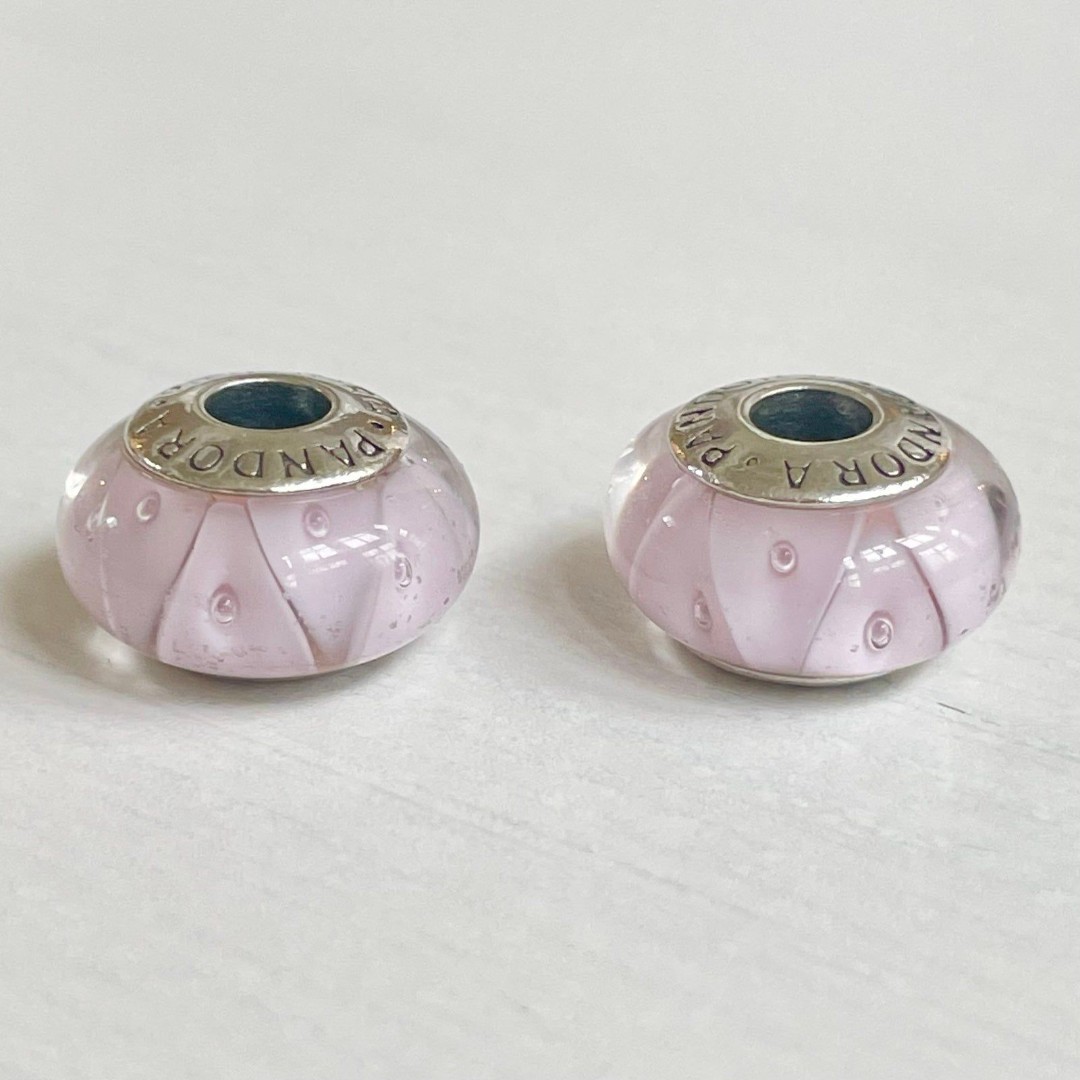 This is a Set of 2 Pandora Retired Pink Looking Glass Murano Charms, in excellent condition